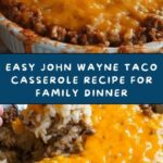 The John Wayne Casserole Recipe is a hearty, flavorful dish that brings together the bold tastes of seasoned ground beef, creamy layers, and melted cheddar cheese in a comforting baked casserole. This recipe is perfect for family dinners or casual gatherings, as it combines simple pantry staples like taco seasoning and Bisquick with fresh ingredients for a crowd-pleasing meal. Its inviting mix of textures and zesty seasoning makes this casserole a true classic you’ll want to make again and again.
