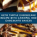 Once the cheesecake is fully chilled, drizzle the caramel sauce gently over the top. Follow with the chocolate sauce in decorative swirls to create a beautiful, irresistible pattern. Finish by sprinkling the toasted pecans on top to add that satisfying crunch and authentic turtle candy look. Now, you’re ready to dig into this heavenly Keto Turtle Cheesecake Recipe!