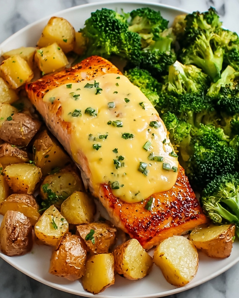For a special touch, serve the salmon fillets on a bed of lemon-infused couscous or alongside ribbons of zucchini noodles tossed in garlic and olive oil. These additions bring an elegant flair while complementing the core flavors of the Lemon Butter Salmon with Crispy Potatoes and Roasted Broccoli Recipe perfectly.