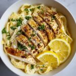 A bright and creamy Lemon Chicken Pasta that combines tender chicken breasts with zesty lemon, garlic, and Parmesan cheese, tossed with perfectly cooked pasta for a quick and satisfying 25-minute meal.