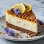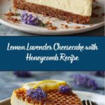 This elegant Lemon Lavender Cheesecake with Honeycomb combines the bright, citrusy flavor of fresh lemon with the delicate floral notes of lavender, creating a sophisticated dessert perfect for special occasions. The creamy texture of the cheesecake is balanced by a crunchy graham cracker crust and topped with sweet honeycomb and a drizzle of honey for added texture and sweetness.