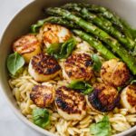 This Lemon Orzo with Asparagus and Halloumi is a vibrant and fresh Mediterranean-inspired dish combining tender orzo pasta, crisp sautéed asparagus, and golden, crispy Halloumi cheese. Brightened with fresh lemon juice, zest, and herbs, it makes a delicious and easy meal perfect for spring or summer gatherings.