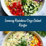 This refreshing Lemony Rainbow Orzo Salad is a vibrant and colorful dish packed with fresh vegetables, herbs, and a zesty lemon dressing. Perfect for a quick 20-minute meal or a side dish, this salad combines tender orzo pasta with crisp red and orange bell peppers, cucumber, red onion, sweet corn, and aromatic basil and parsley. The tangy dressing made with olive oil, lemon juice, Dijon mustard, and garlic brings all the flavors together, making it ideal for summer lunches, picnics, or potlucks.