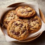 Levain Bakery NYC Cookies are famously thick, gooey, and packed with chocolate chips and walnuts. This recipe replicates their signature cookie with a crunchy exterior and soft, melty center. Using cold butter, a careful mixing technique, and baking at a high temperature results in an irresistible large cookie that is slightly underbaked in the middle for that classic Levain texture.