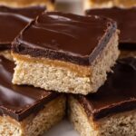 9. Top with Chocolate and Set: Spread the melted chocolate evenly over the peanut butter layer. Let the bars set at room temperature or refrigerate until the chocolate is firm before slicing into 24 bars for serving.