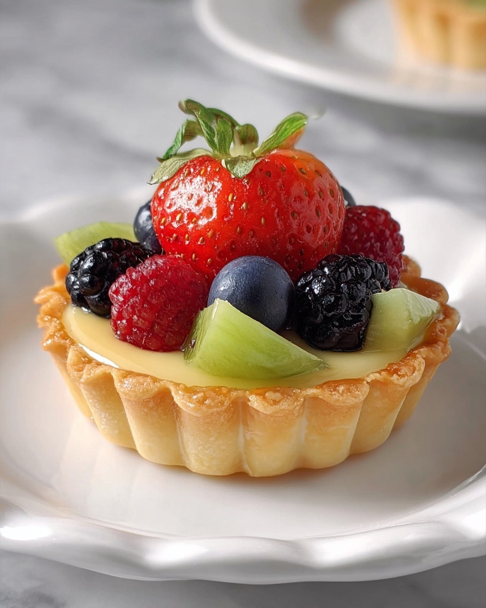 Adding a sprig of fresh mint or a light dusting of powdered sugar can elevate the presentation, but these tarts shine on their own thanks to their brilliant fruit topping. If you want to get adventurous, a few edible flower petals add a whimsical, elegant touch perfect for special occasions.