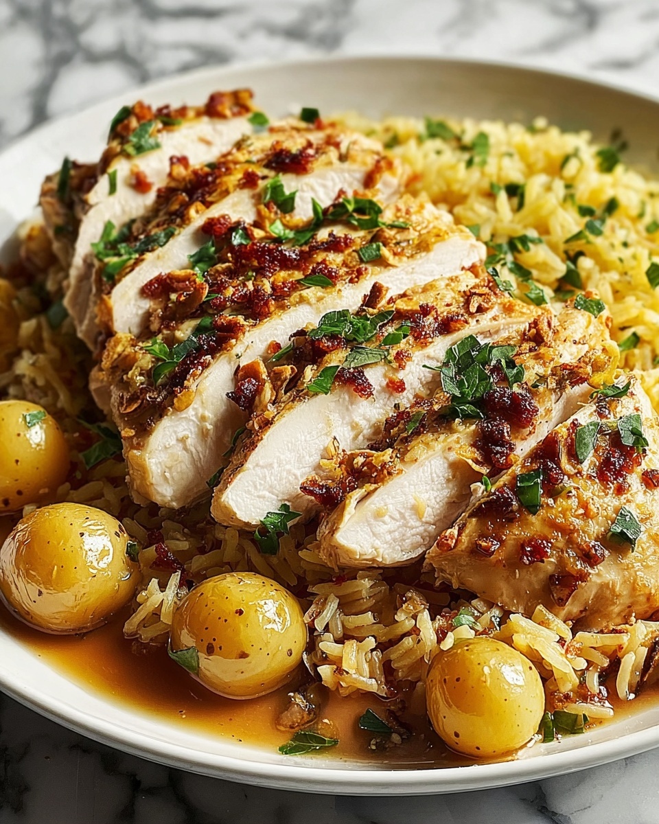 Drizzle the chicken broth over everything. This liquid prevents the chicken from drying out and helps to create the luscious sauce that you’ll want to savor with every bite.