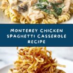 This Monterey Chicken Spaghetti Casserole is a comforting, creamy baked pasta dish that combines tender chicken, spinach, creamy soup, and melted Monterey Jack cheese, topped with crispy French fried onions for a delightful crunch. Perfect for a hearty family dinner, this casserole brings together simple ingredients in a satisfying and flavorful way.