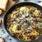 This Mushroom Gruyère Pasta is a creamy, comforting dish featuring sautéed cremini mushrooms in a rich white wine and cream sauce, enriched with melted Gruyère and Parmesan cheeses. Perfect for a cozy dinner, it combines tender pasta with a flavorful, golden mushroom sauce, finished with fresh parsley for a touch of brightness.