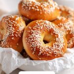 - Add Toppings and Bake: Sprinkle the bagels with your choice of sesame seeds, poppy seeds, dried onion flakes, or coarse salt. Bake for 20-25 minutes until they turn golden brown.
