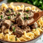 Serve the steaming stroganoff over the cooked egg noodles, letting the noodles soak up that irresistible sauce. Don’t forget to garnish with fresh parsley if you like, for a pop of color and freshness!