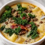 This Olive Garden Zuppa Toscana Soup is a hearty and comforting dish featuring Italian sausage, crispy bacon, tender potatoes, and nutritious kale simmered in a rich, creamy broth. Perfect for a cozy dinner, this easy-to-make soup balances savory flavors with a touch of spice and creaminess.
