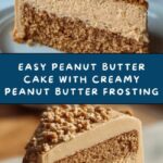 A rich and moist Peanut Butter Cake topped with creamy peanut butter frosting, perfect for peanut lovers seeking a homemade, nutty dessert with classic American flavors.