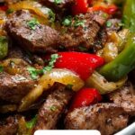 This Pepper Steak with Bell Peppers and Onion recipe features tender flank steak stir-fried with colorful bell peppers and onions in a savory Asian-inspired sauce. Marinated in soy and oyster sauces, then stir-fried with garlic and fresh ginger, the dish is finished with hoisin and sesame oils for a perfect balance of flavor. Served hot over steamed rice, it makes a quick and satisfying main course that’s perfect for weeknight dinners.