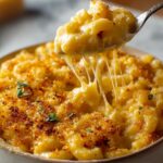Transfer the cheesy pasta mixture into a buttered baking dish. Sprinkle the panko bread crumbs evenly over the top for that wonderful golden crust. Bake in a preheated oven at 350°F (175°C) for 20–25 minutes, or until the top is crisp and the cheese sauce is bubbly and inviting.