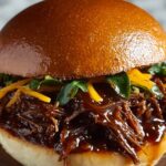 This Pulled Beef Sandwich recipe features tender, slow-cooked beef chuck roast seasoned with smoky spices and simmered in a rich barbecue sauce. Perfectly shredded and served on toasted sandwich buns, it delivers a satisfying and flavorful meal ideal for easy family dinners or casual gatherings. Optional coleslaw adds a refreshing crunch to complement the savory beef.