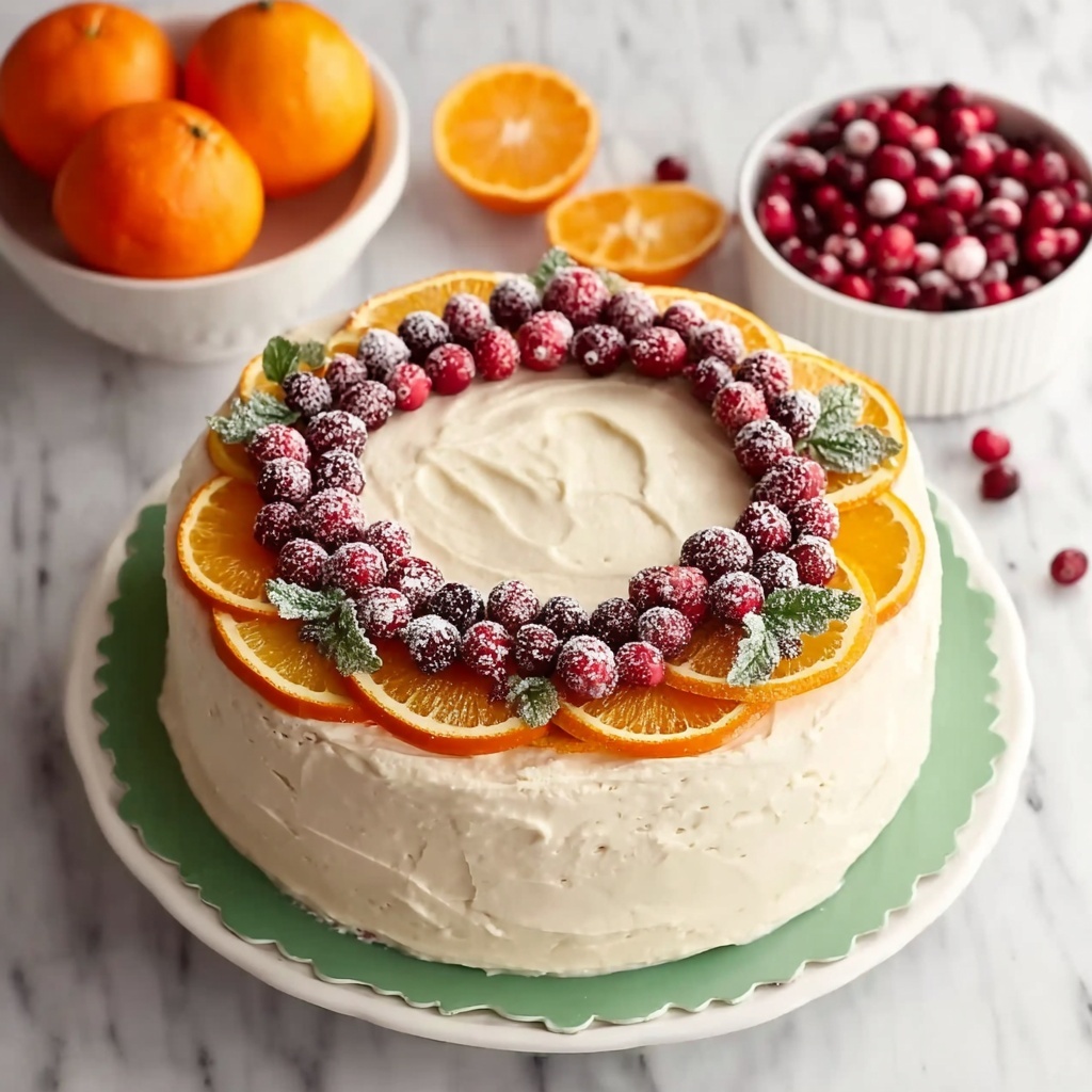 - Assemble and Frost: Once the cakes are fully cooled, evenly spread the cream cheese frosting over the top and sides. Decorate the bars with fresh cranberries, orange slices, and thyme sprigs for a festive and elegant presentation.