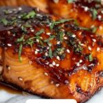 - Serve: Remove the salmon from the skillet and plate immediately. Garnish with sliced green onions and sesame seeds for added flavor and texture. Serve hot with steamed rice and sautéed vegetables for a complete meal.