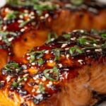- Serve: Remove the salmon from the skillet and plate immediately. Garnish with sliced green onions and sesame seeds for added flavor and texture. Serve hot with steamed rice and sautéed vegetables for a complete meal.