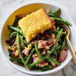 Pair this smoky green beans dish with classic Southern staples like fluffy cornbread, creamy mashed potatoes, or even some fried okra for texture contrast. It’s also fantastic alongside slow-cooked barbecue or crispy fried chicken for a full-on soulful Southern feast.