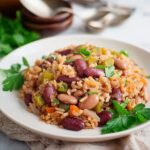 A hearty and flavorful traditional Red Beans and Rice recipe featuring tender red kidney beans simmered with aromatic vegetables and spices, served over fluffy white rice. Perfect for a comforting and nutritious meal.