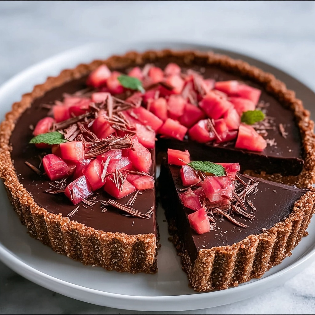 A simple dusting of powdered sugar or a few fresh mint leaves instantly elevates the tart’s presentation. For a rustic flair, add a dollop of whipped cream or a sprinkle of toasted almonds for crunch. The garnishes should complement, not compete with, the tart’s rich chocolate and tangy rhubarb.