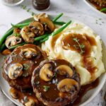 Classic mashed potatoes are your best friend here, soaking up every bit of that luscious mushroom gravy. Roasted green beans or steamed carrots add a fresh, crisp bite and bright color to the plate. For a bit more indulgence, creamy buttered egg noodles or fluffy rice also make fantastic companions to the Salisbury Steak.