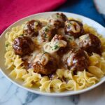 This Saucy Skillet French Onion Meatballs with Egg Noodles recipe delivers hearty, flavorful meatballs simmered in a rich French onion sauce. The caramelized onions and savory broth enhance the ground beef meatballs, while tender egg noodles provide the perfect base. Ready in just about an hour, this comforting dish is ideal for a family dinner that feels gourmet yet easy to make.