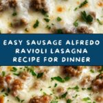 This Sausage Alfredo Ravioli Lasagna is a hearty and delicious twist on traditional lasagna, layering tender cheese ravioli with rich Alfredo sauce, savory Italian sausage, and a blend of mozzarella and Parmesan cheeses. Baked to perfection with a golden bubbly cheese crust, it’s an easy, comforting meal perfect for family dinners.
