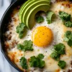 Skillet Huevos Rancheros is a classic Mexican breakfast featuring eggs cooked in a flavorful tomato sauce with spices, served on warm corn tortillas and garnished with queso fresco, cilantro, and avocado. This simple stovetop recipe comes together quickly for a satisfying and colorful meal that’s perfect for any morning.