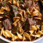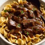 - Combine & Serve: Serve the tender slow-cooked beef and rich gravy over the cooked wide egg noodles, ensuring a hearty and flavorful meal.