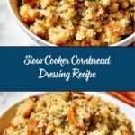 This Slow Cooker Cornbread Dressing Recipe shines alongside classic holiday mains like roast turkey, glazed ham, or roasted chicken. It also pairs wonderfully with green bean casserole, cranberry sauce, or your favorite sautéed greens to round out a comforting, balanced meal.