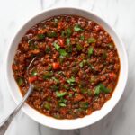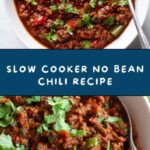 This Slow Cooker No Bean Chili is a hearty and flavorful chili made with a combination of ground beef and chuck roast, slow-cooked with tomatoes, spices, and vegetables for a rich and savory dish that’s perfect for cozy meals without the beans.