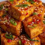 This Spicy Crispy Tofu recipe delivers perfectly golden, crunchy tofu cubes coated in a flavorful, spicy glaze. With a balanced mix of heat from sriracha and chili flakes, sweetness from maple syrup, and tang from rice vinegar, it’s an easy and delicious plant-based dish perfect for a quick lunch or dinner. Served garnished with sesame seeds, green onions, and fresh cilantro, this tofu can be enjoyed on its own or paired with rice and vegetables for a complete meal.