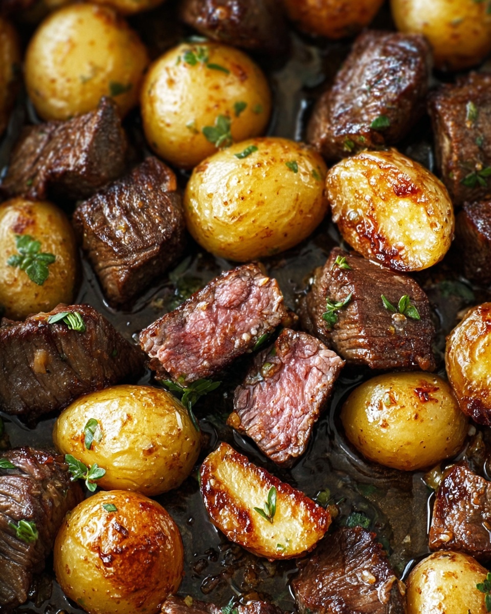 This Steak Bites and Potatoes recipe offers a quick and delicious meal perfect for any weeknight. Tender, juicy top sirloin steak chunks are seasoned and pan-seared to medium-rare perfection, paired with crispy, golden baby potatoes seasoned with a flavorful blend of spices. Finished with butter and fresh parsley, this skillet-based dish is easy to prepare and sure to satisfy steak lovers and potato fans alike.