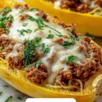For an elegant twist, serve the Stuffed Spaghetti Squash with Ground Beef, Broccoli, and Mozzarella Recipe on individual plates with a drizzle of balsamic glaze. Or create a family-style presentation by placing the stuffed halves on a large platter garnished with fresh herbs and lemon wedges. It’s both rustic and inviting, perfect for sharing.