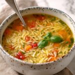 This Summery Orzo Soup is a light, flavorful dish perfect for a quick and nutritious meal. Packed with fresh vegetables, tender orzo pasta, and brightened with lemon and fresh basil, this soup is a delightful combination of textures and tastes. It’s easy to prepare in under 35 minutes, making it ideal for a wholesome lunch or dinner.