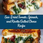 A delicious and comforting Sun-Dried Tomato, Spinach, and Ricotta Grilled Cheese sandwich featuring a blend of creamy ricotta, melty mozzarella, and sharp Parmesan cheeses layered with sweet-tart sun-dried tomatoes and fresh spinach on crispy sourdough bread. Perfect for a quick lunch or cozy snack.