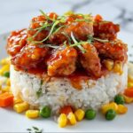 Add a fresh crunch and color contrast by sprinkling chopped green onions and toasted sesame seeds over the saucy chicken. These garnishes not only lift the visual appeal but also add flavor layers that make every forkful exciting.