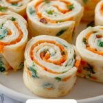 Starting from one edge, roll up the tortilla snugly but gently enough so it doesn’t tear. A tight roll ensures the filling stays inside and that your slices look perfect and hold together well.