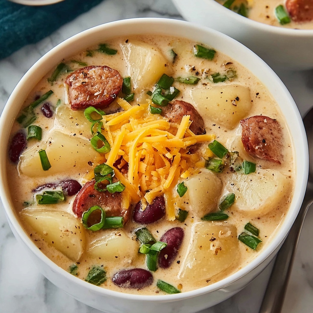 For a fun twist, serve the soup in bread bowls to impress guests, or layer with garnishes in clear glass mugs to show off its creamy texture and colorful toppings. Mixing crispy bacon instead of sausage or adding a drizzle of chili oil can elevate this classic into something uniquely yours.