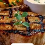 This Tremendous Ribeye Steak with French Onions and French Fries Feast is a classic American main course featuring perfectly seared bone-in ribeye steaks topped with rich, caramelized French onions and served alongside crispy homemade French fries. The steak is seasoned and cooked to medium-rare, basted with butter for extra flavor, while the onions are slowly caramelized with sugar and balsamic vinegar to enhance their sweetness and depth. The fries are fried to golden perfection, making a satisfying and indulgent meal ideal for steak lovers.