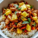 A vibrant and flavorful Tropical Pineapple Chicken & Rice Delight combining tender chicken breast, sweet pineapple chunks, colorful bell peppers, and savory soy sauce, all served over perfectly cooked white rice. This quick and easy stir-fry inspired dish brings a delicious balance of sweet and savory to your dinner table in under 45 minutes.