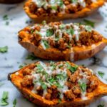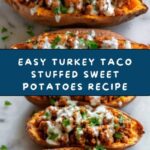These Turkey Taco Stuffed Sweet Potatoes offer a delicious and nutritious twist on traditional tacos, combining tender baked sweet potatoes with a flavorful mixture of seasoned ground turkey, black beans, and corn. Topped with melted cheddar cheese and fresh garnishes, this Mexican-inspired dish is perfect for easy weeknight dinners or meal prep.
