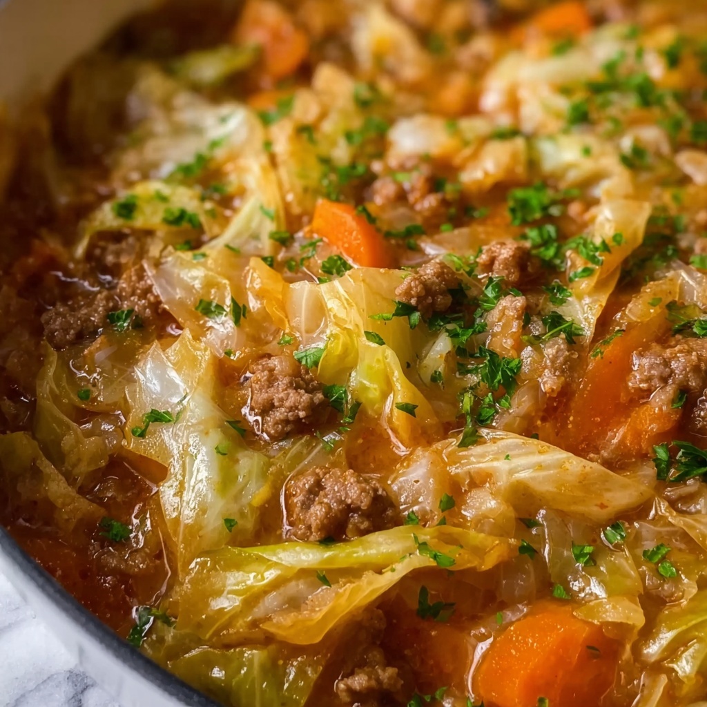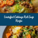 Unstuffed Cabbage Roll Soup is a comforting and hearty dish that captures the flavors of traditional cabbage rolls without the hassle of stuffing. This soup combines ground beef and pork with savory tomato sauce, tender cabbage, and rice, all simmered to perfection in a rich beef broth. Perfect for a cozy family meal, it’s easy to prepare and packed with satisfying flavors.